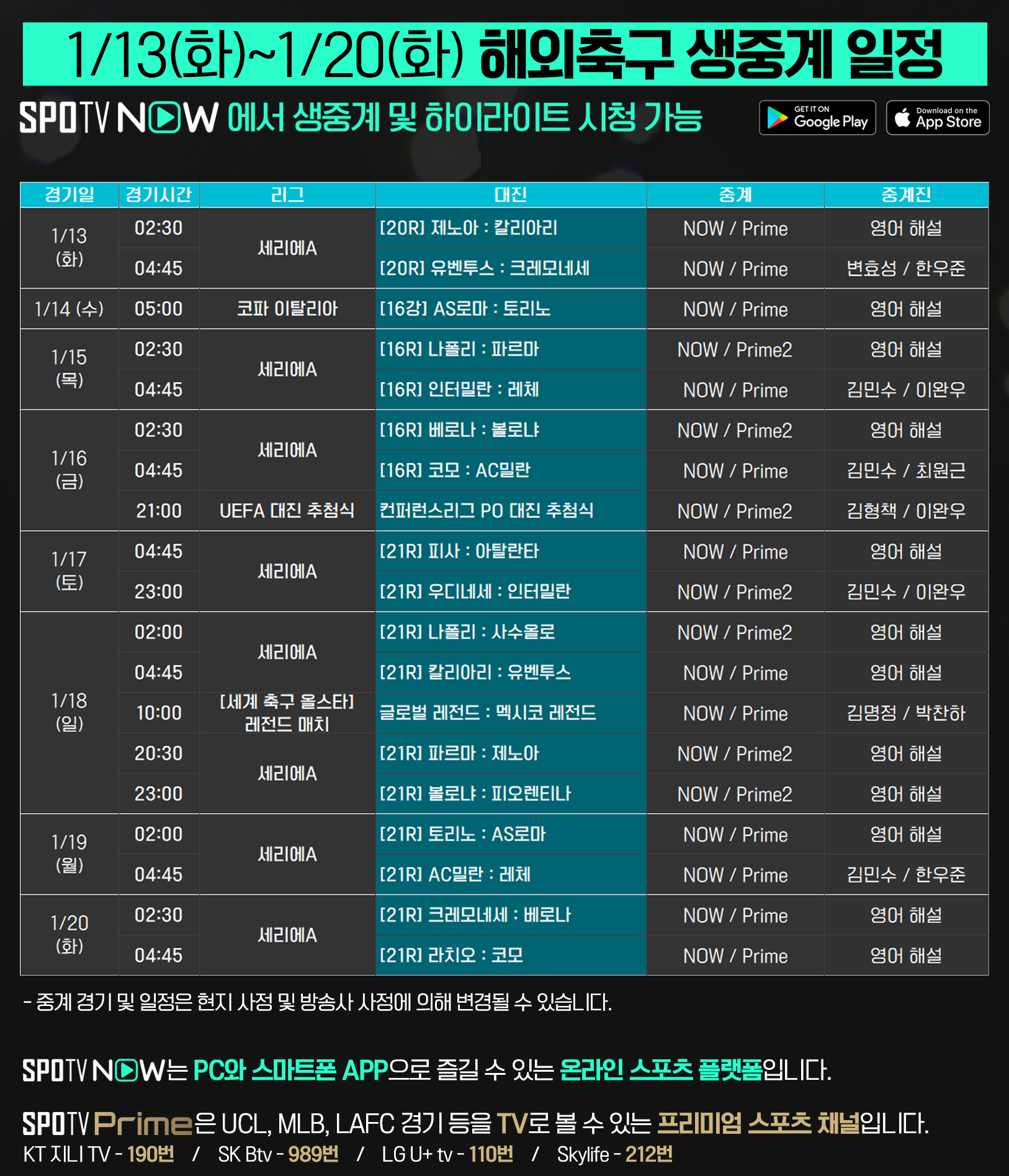 치열한 우승 경쟁이 펼쳐지고 있는 25-26 세리에A 생중계는 SPOTV NOW와 SPOTV Prime에서 시청할 수 있습니다.