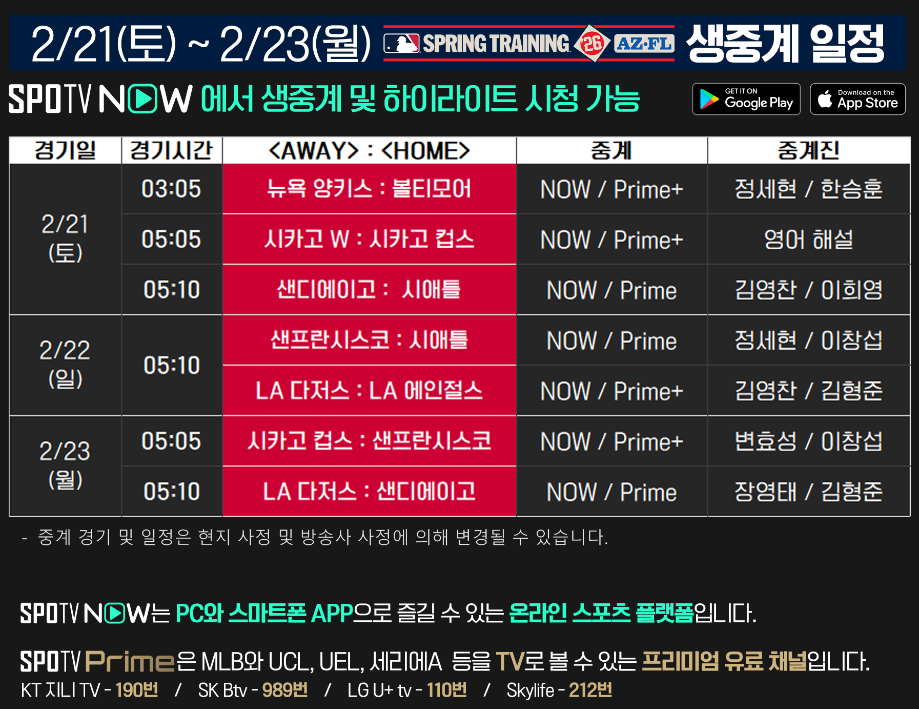 시범경기 & 정규시즌 생중계는 SPOTV Prime, SPOTV NOW에서 만나 보세요.