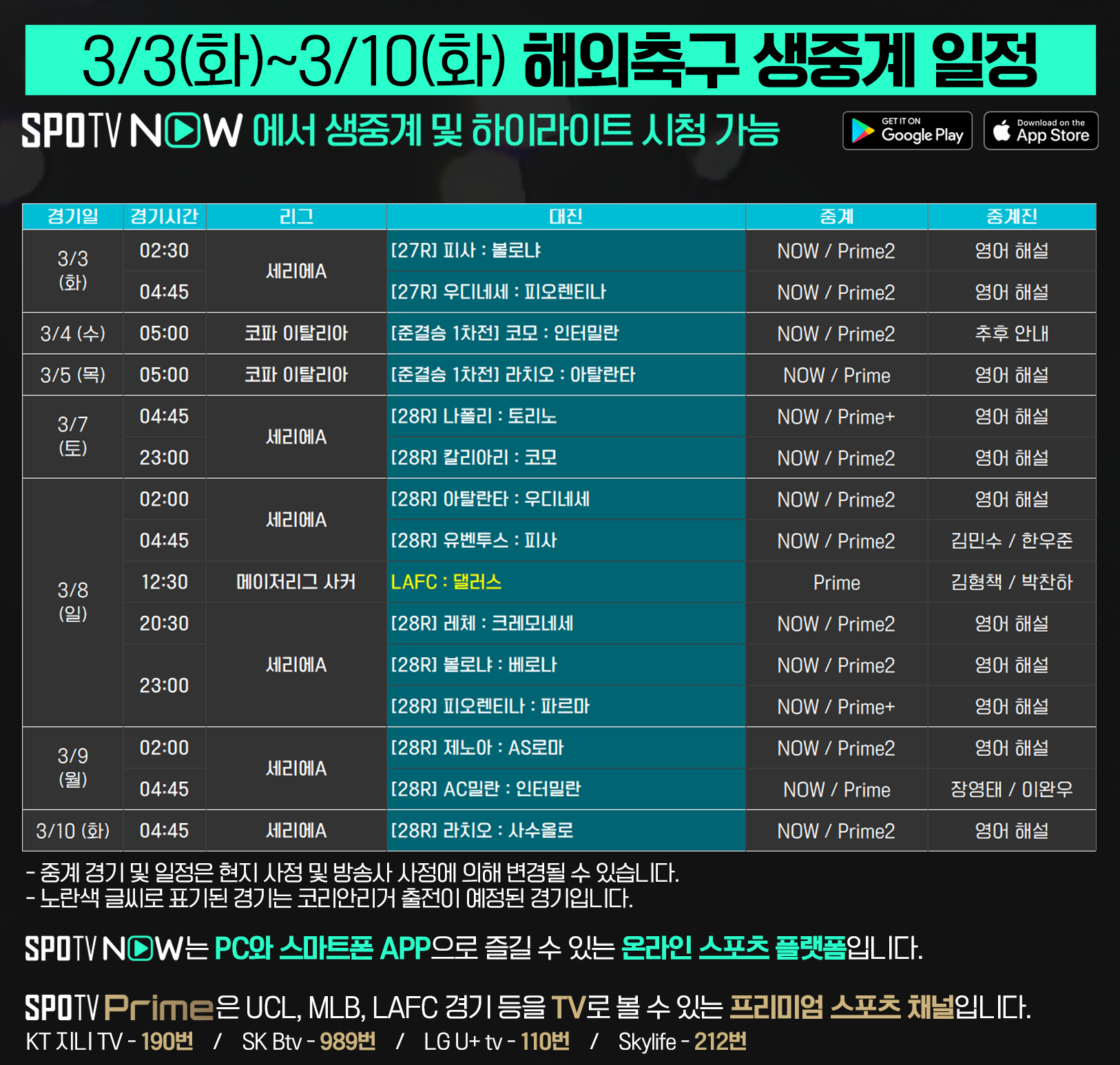 ▶ http://www.spotvnow.co.kr/football/