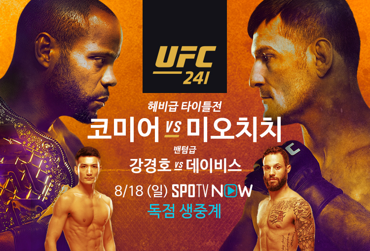 '미스터 퍼펙트' 강경호 선수가 브랜든 데이비스를 제물로 UFC 5승을 달성할 수 있을지에도 많은 기대가 모이고 있는 UFC 241은 오는 18일 일요일 SPOTV ON, SPOTV NOW에서 독점 생중계됩니다.