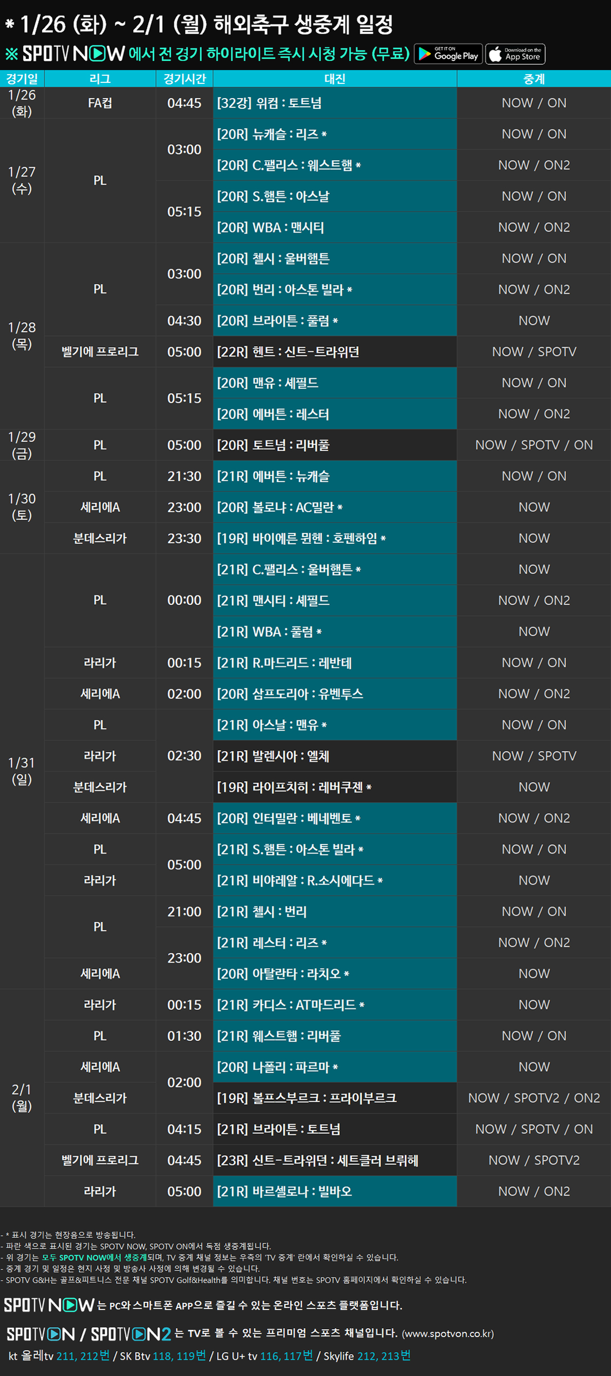 [TV] SPOTV ON 채널번호 바로가기