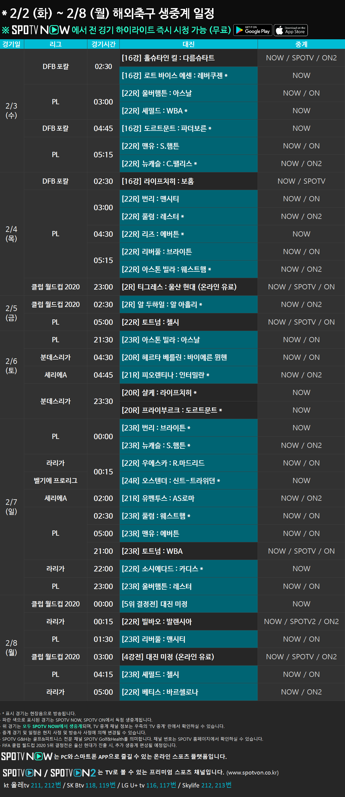 [TV] SPOTV ON 채널번호 바로가기