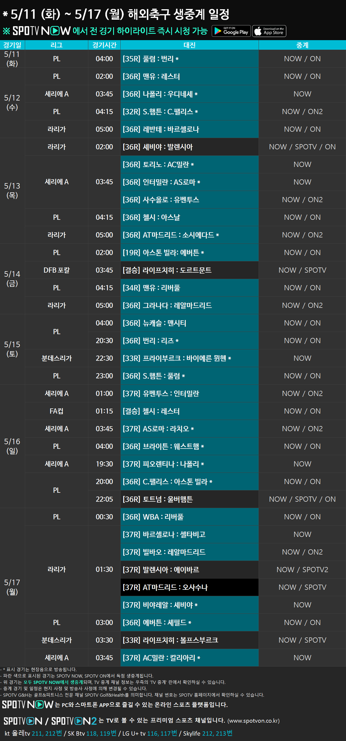 ■ 코리안리거 출격 예정 경기 안내