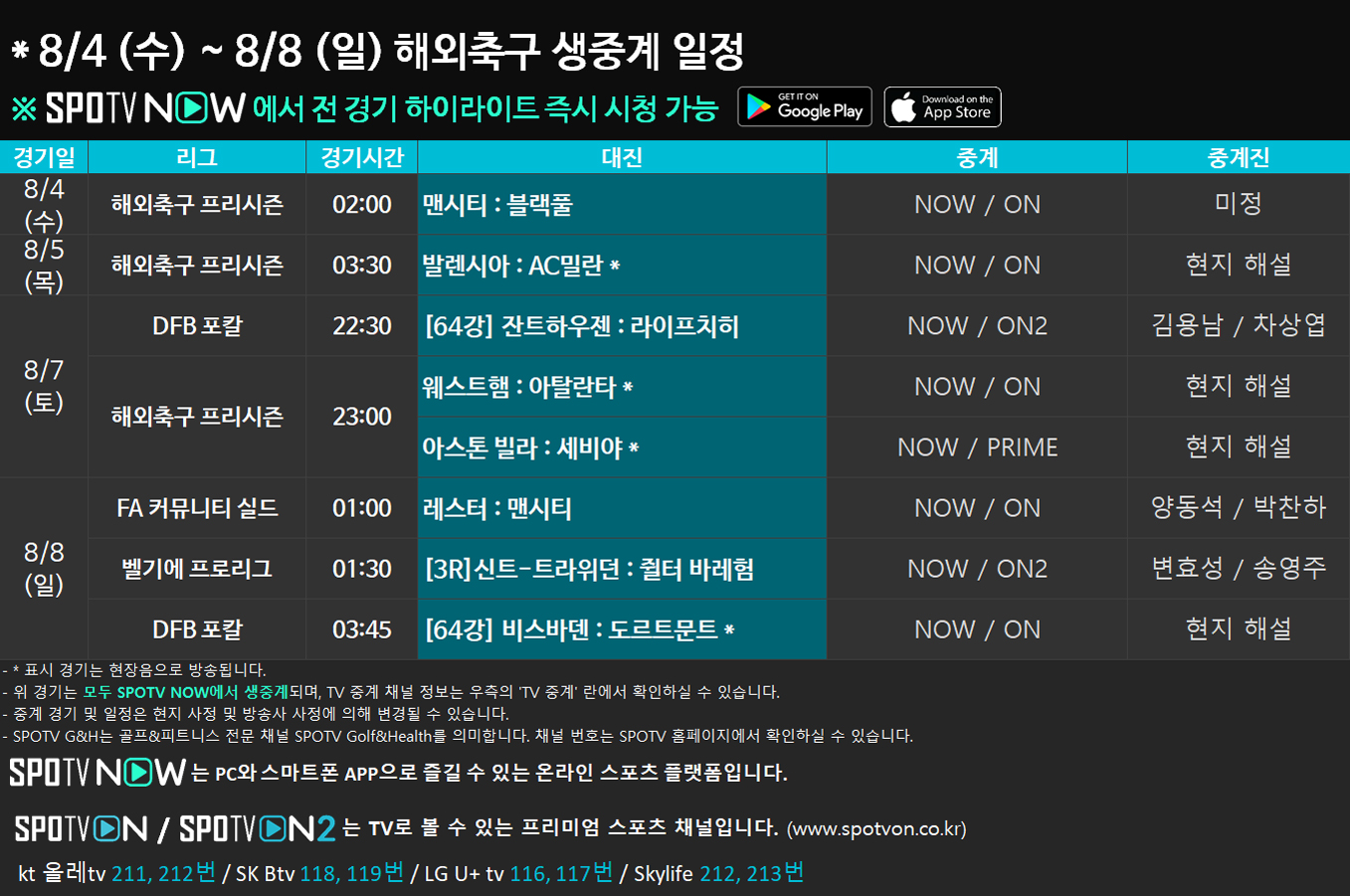 [TV] SPOTV ON 채널번호 바로가기