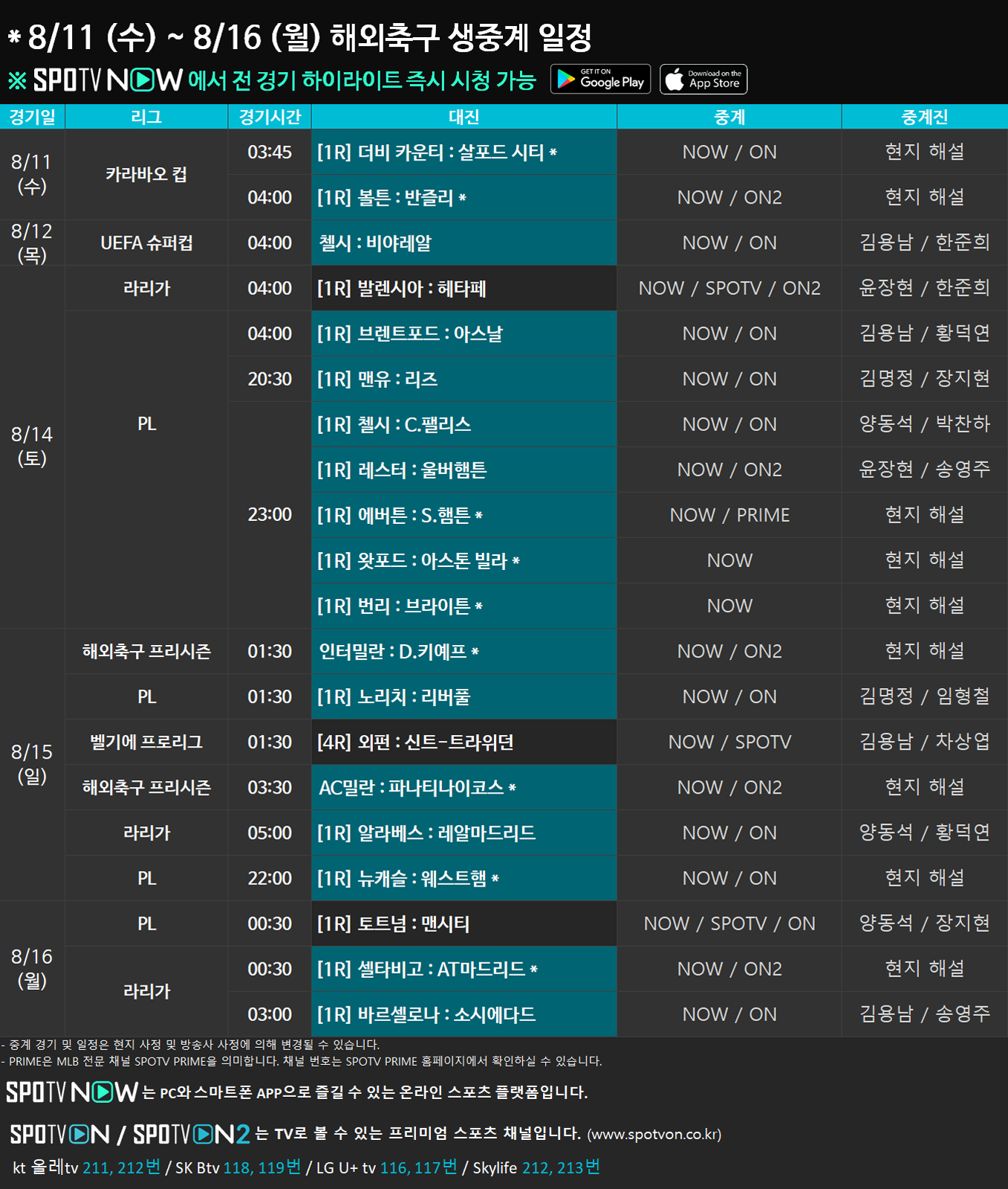 [손흥민] 00:30 PL '토트넘 : 맨시티' / NOW, SPOTV, ON