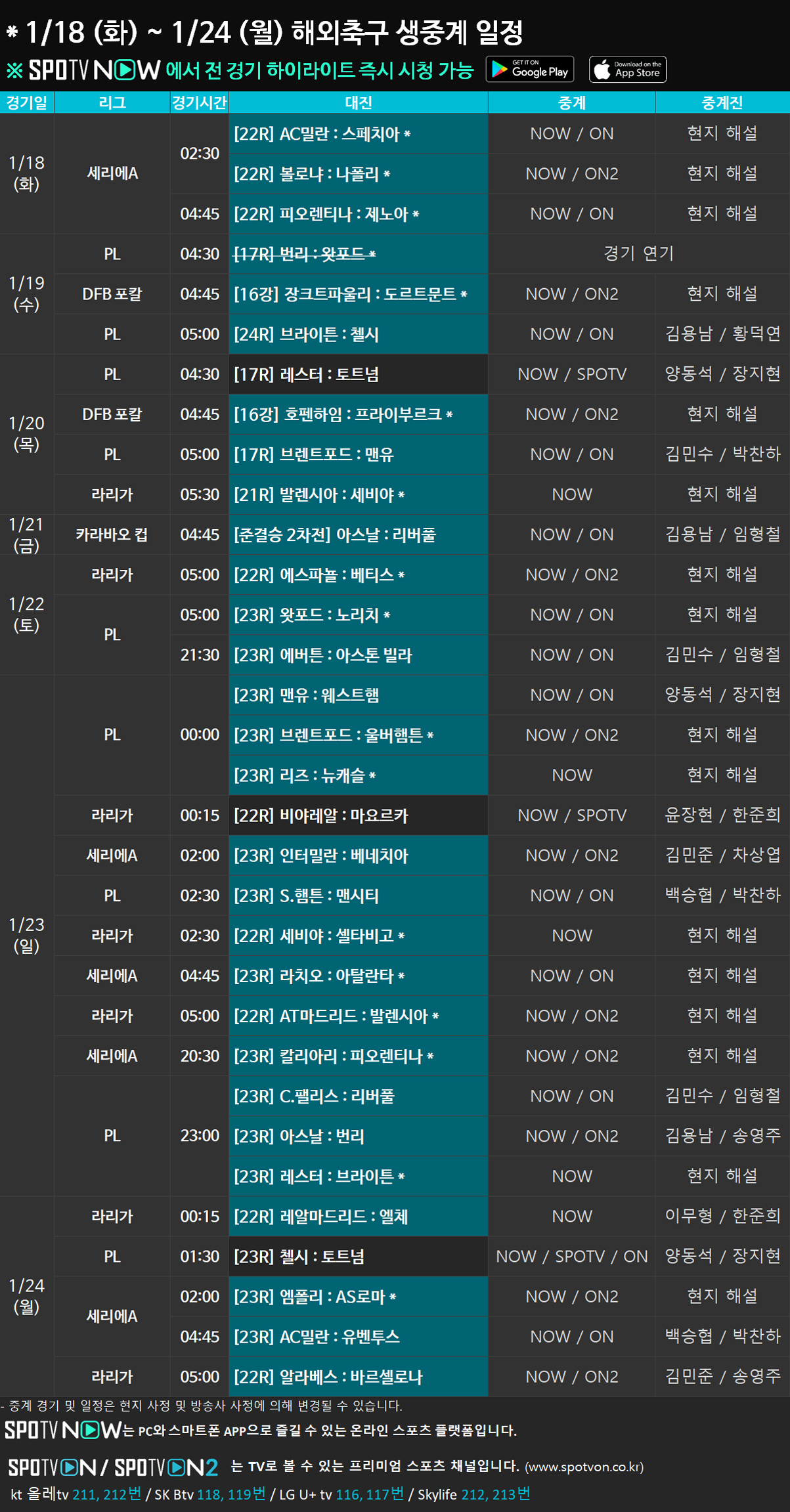 카라바오 컵 준결승, DFB 포칼 16강 주요 경기를 SPOTV NOW에서 만나 보세요!