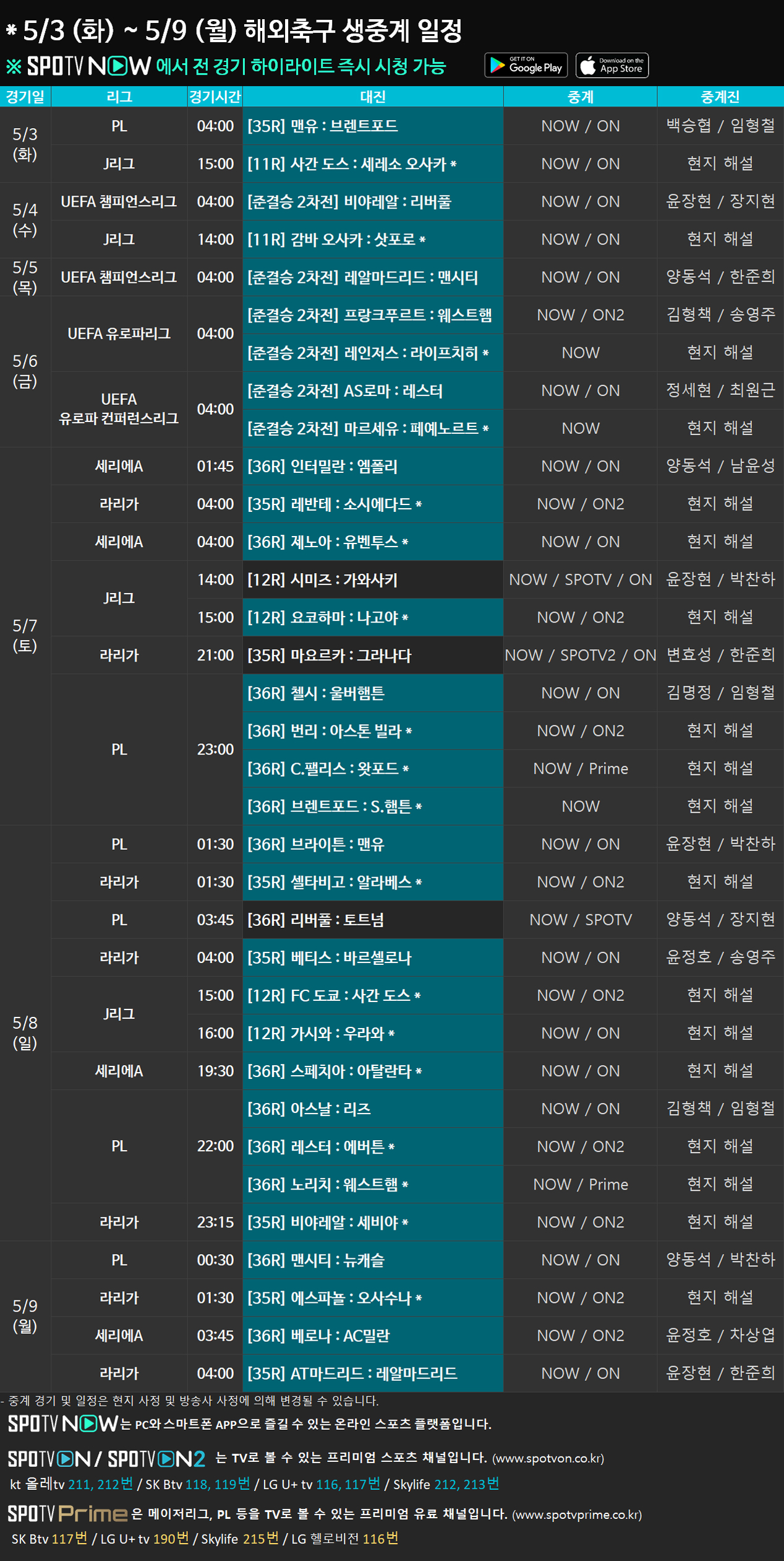 21-22 챔스 준결승 생중계를 SPOTV ON & SPOTV NOW에서 만나 보세요!