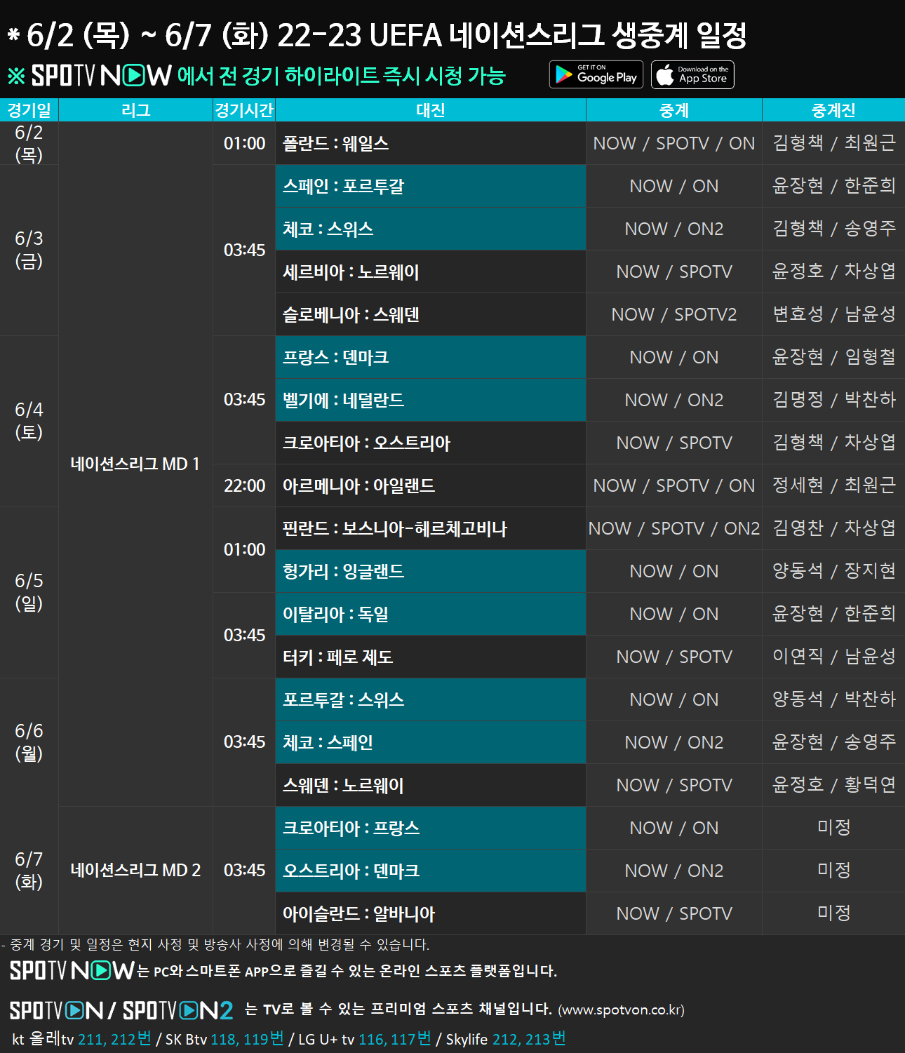 22-23 UEFA 네이션스리그가 시작됩니다.