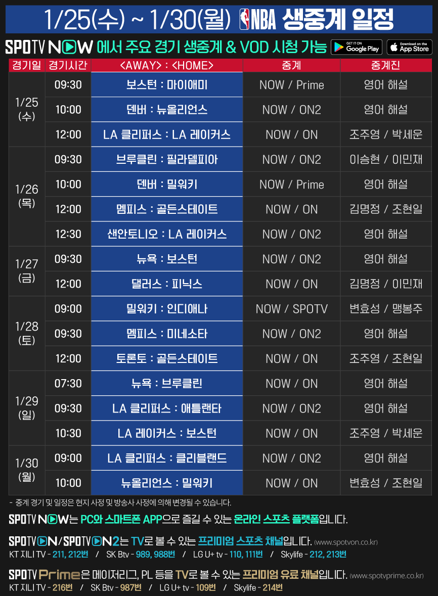 22-23 NBA 주요 경기 생중계는 SPOTV NOW, SPOTV ON에서 만나보세요!