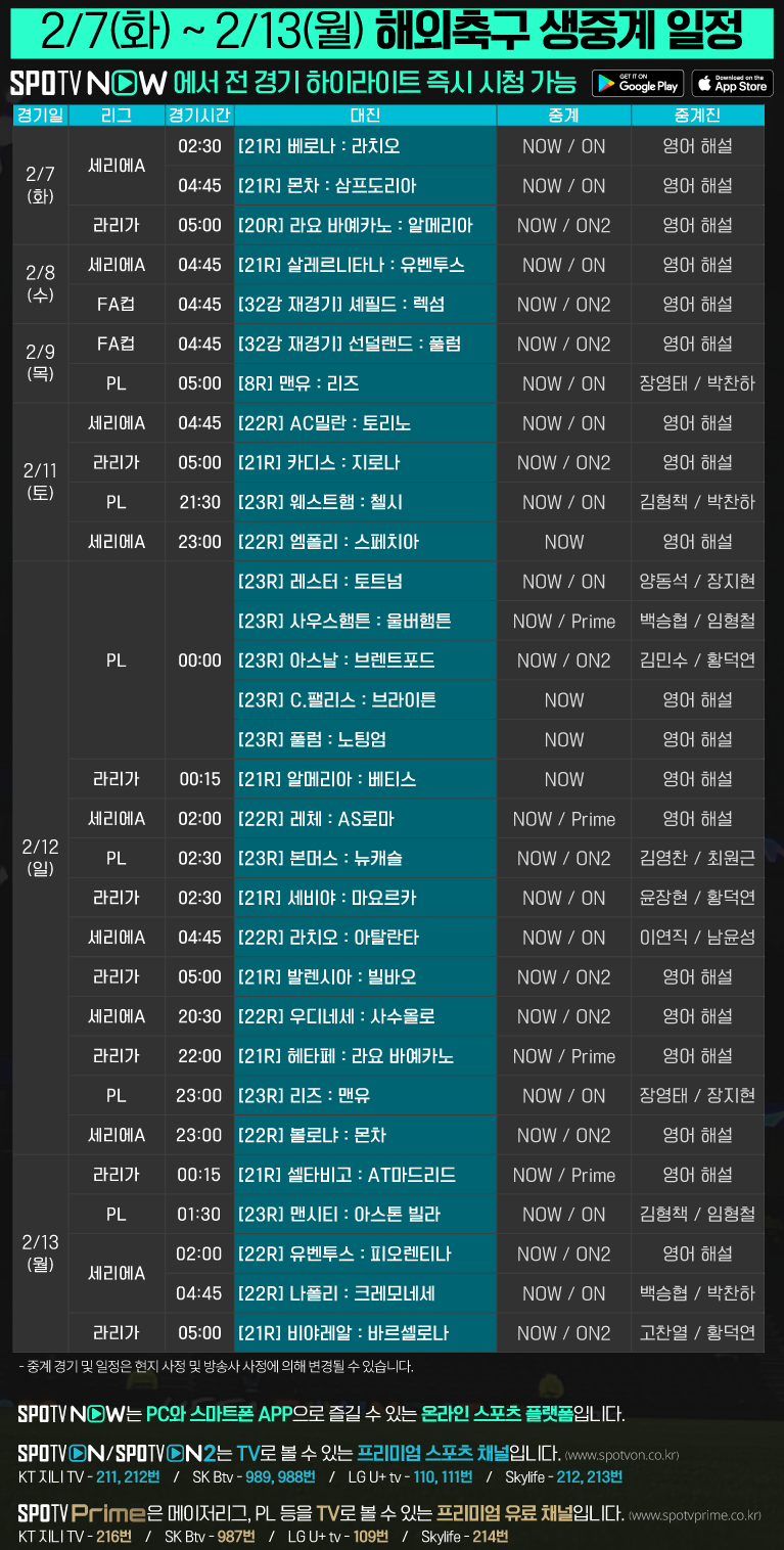 (KT 지니 TV 211번 / SK Btv 989번 / LG U+ tv 110번 / Skylife 212번)