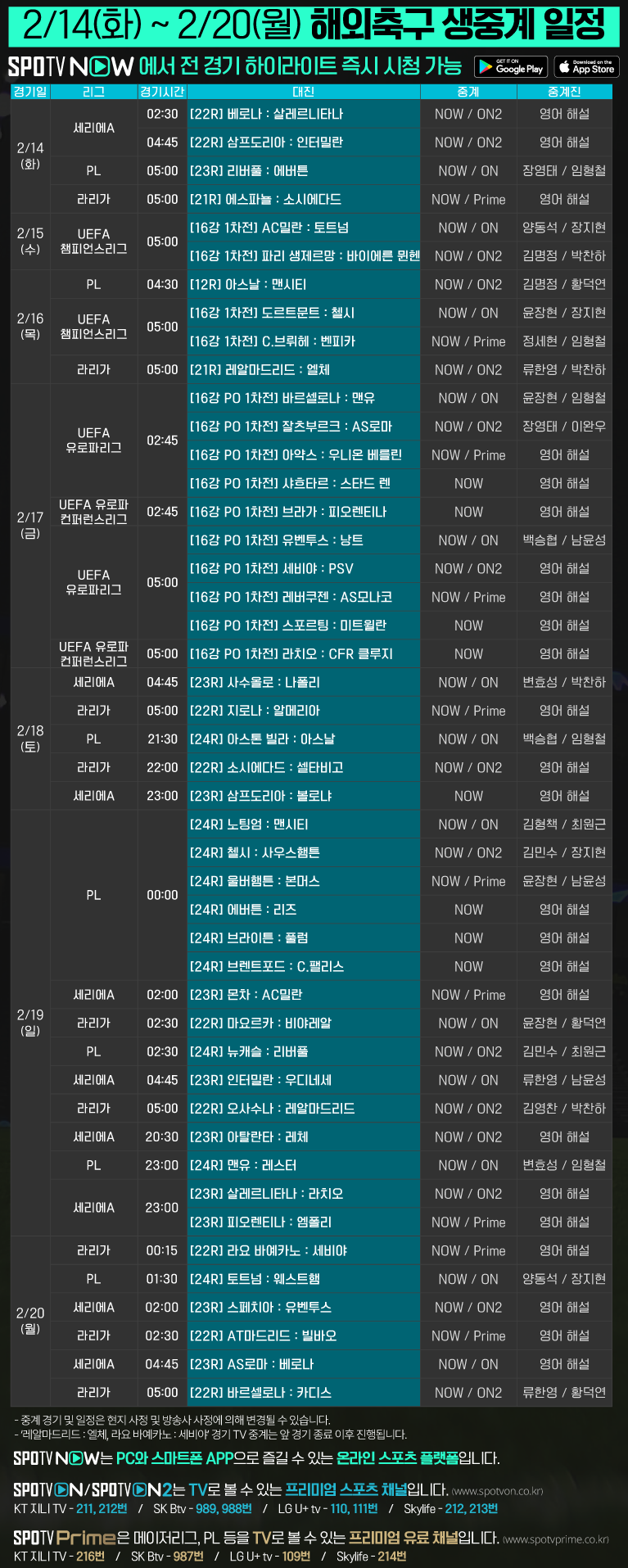 22-23 UCL 16강 & UEL, UECL 16강 PO 생중계를 SPOTV NOW, SPOTV ON에서 만나 보세요!
