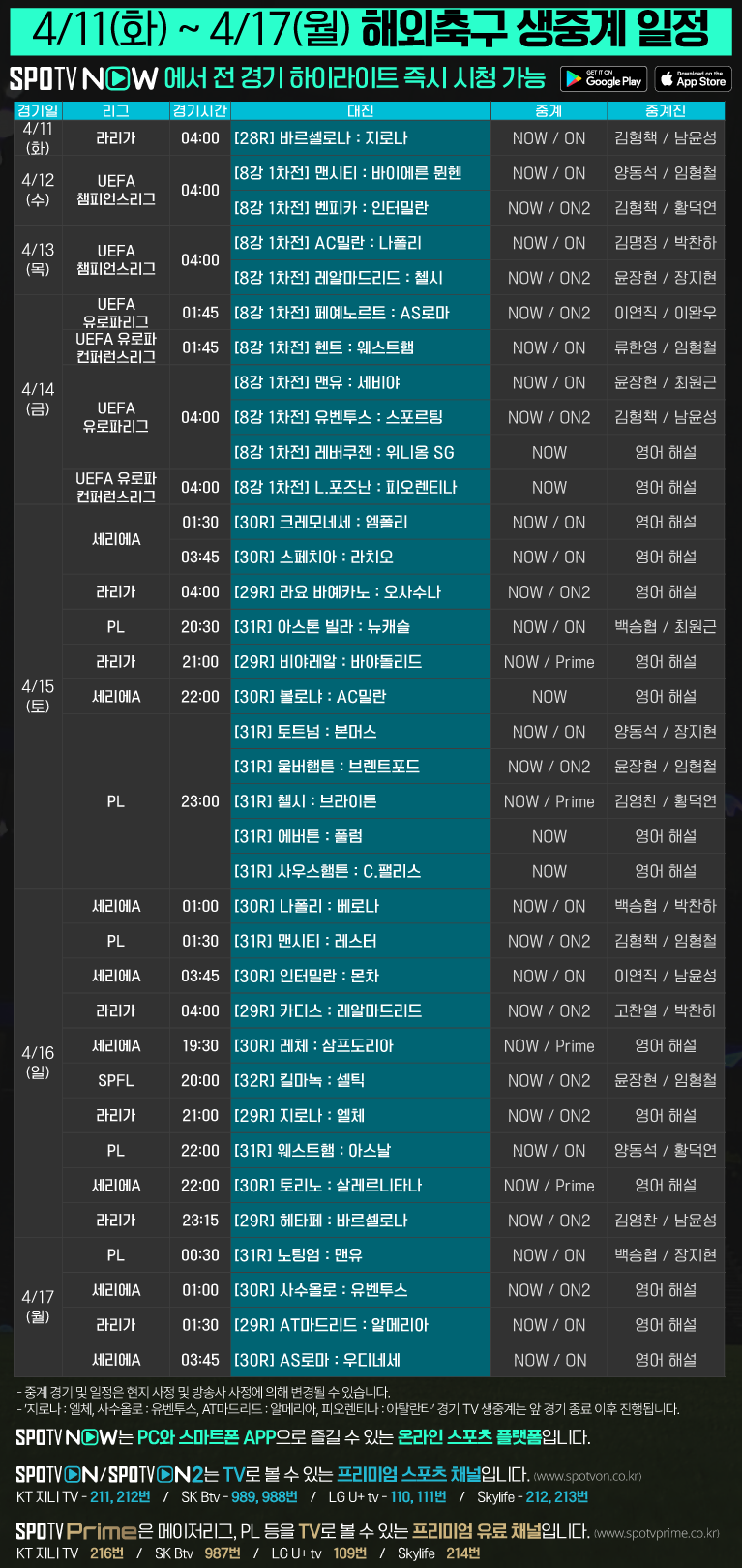 22-23 UCL 8강 전 경기 생중계를 SPOTV NOW, SPOTV ON에서 만나 보세요!