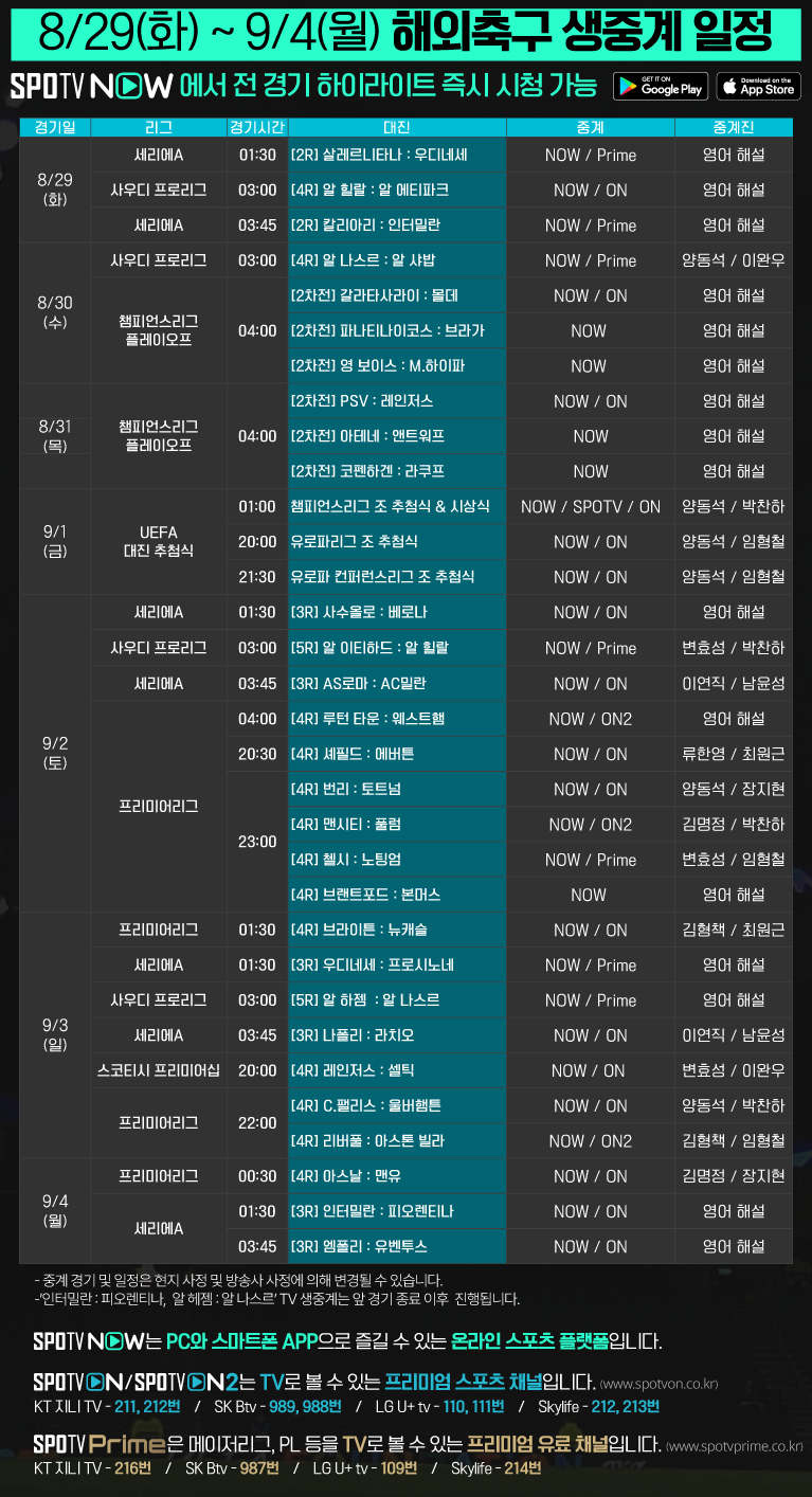 23-24 UEFA 조 추첨식 & 시상식 역시 SPOTV NOW와 SPOTV, SPOTV ON에서 만나 보세요