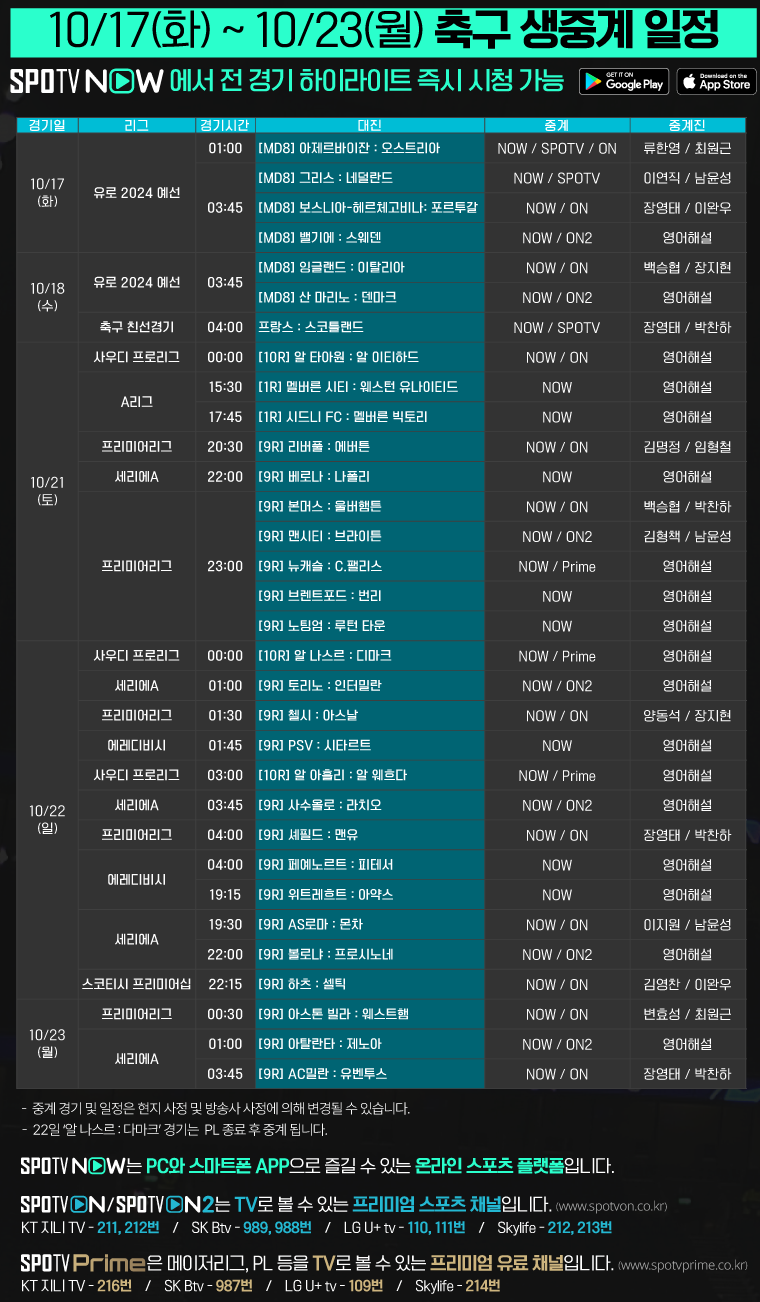 10/18(수) 03:45 프랑스 : 스코틀랜드 / NOW, SPOTV