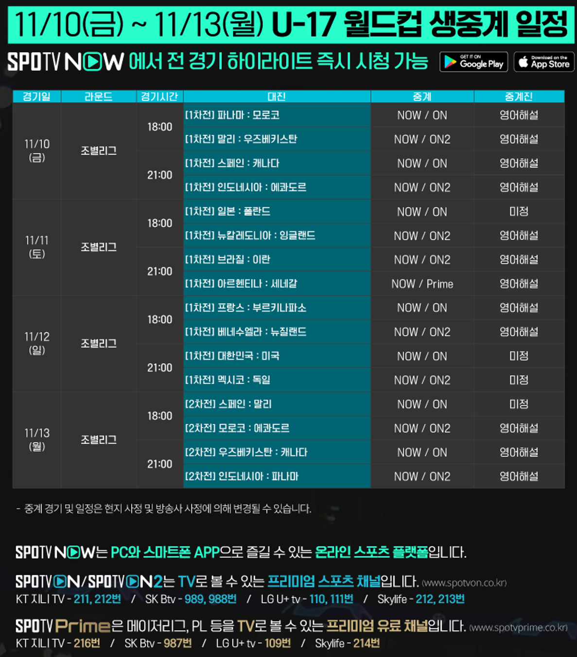 2023 U-17 월드컵 전 경기 생중계는 SPOTV NOW에서 시청할 수 있습니다.