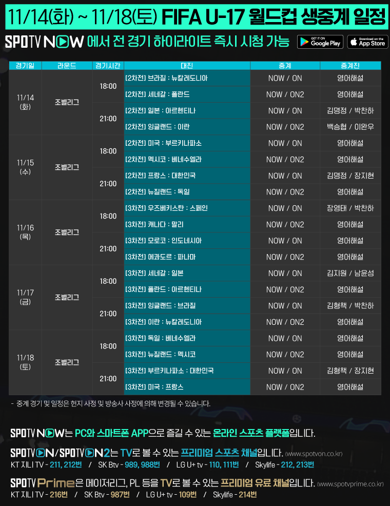 2023 U-17 월드컵 전 경기 생중계는