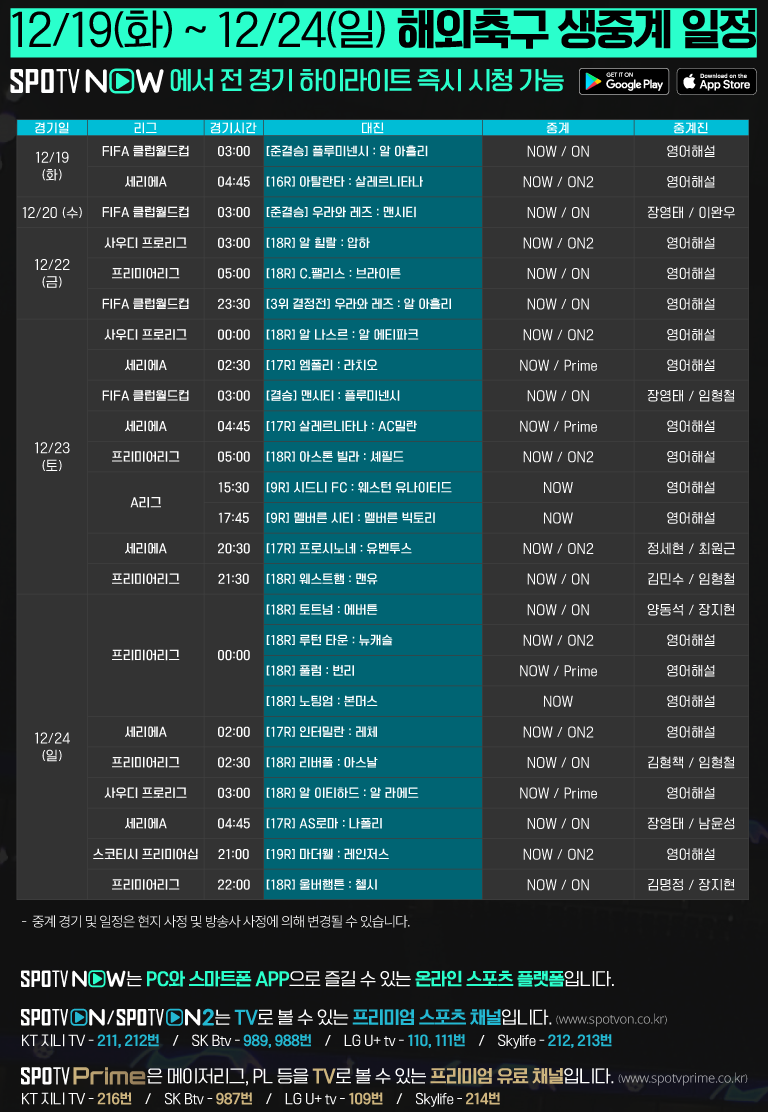 2023 FIFA 클럽 월드컵 준결승부터 결승까지 SPOTV ON과 SPOTV NOW에서 시청하세요!