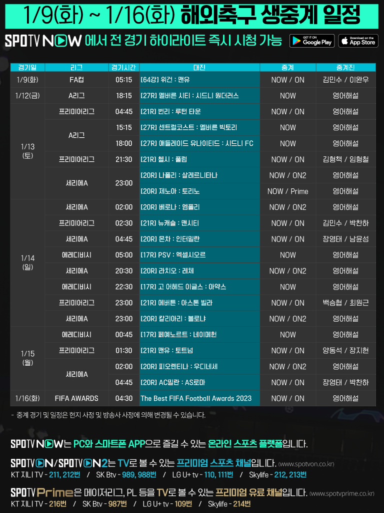 1/16(화) 04:30 The Best FIFA Football Awards 2023 / NOW, ON