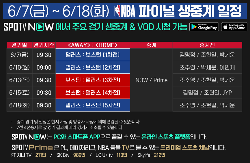 SPOTV Prime과 SPOTV NOW에서 만나보세요 :)