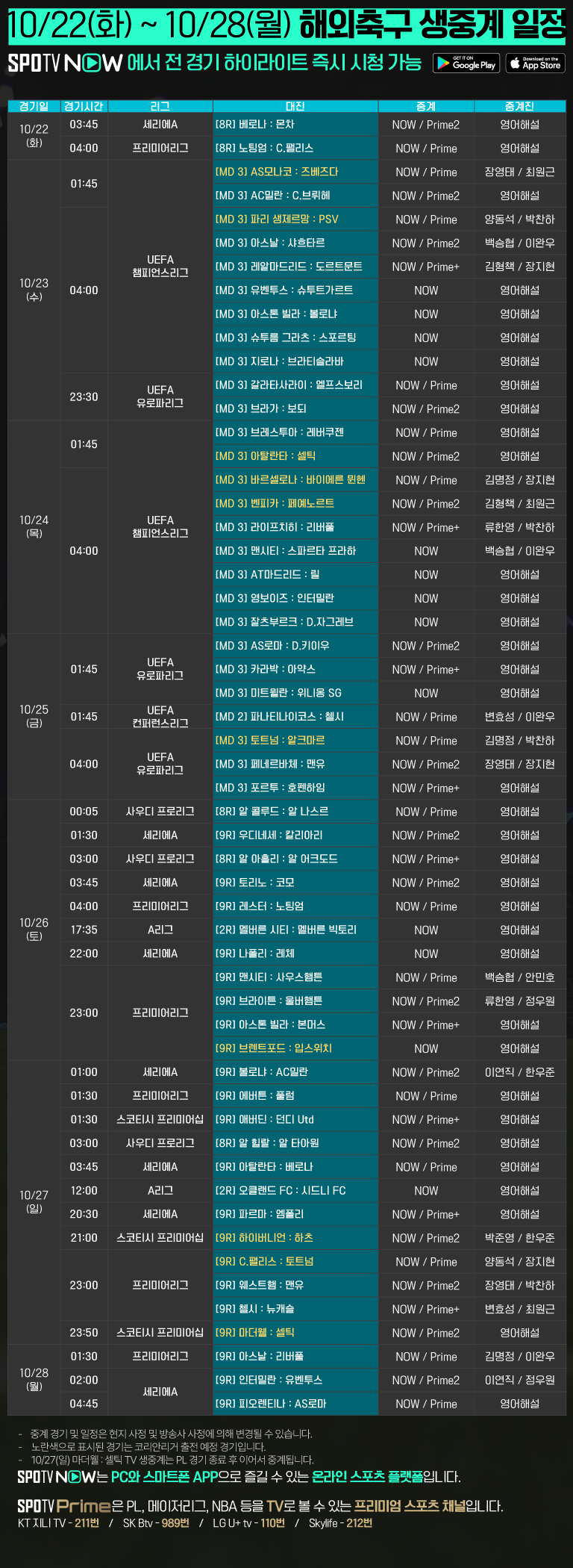 (KT 지니 TV 211번 / SK Btv 989번 / LG U+ tv 110번 / Skylife 212번)![10.4ff[2].png](https://spotv.net/images/4e37a9bc-5b8c-4e09-af30-5792963fa132.png)