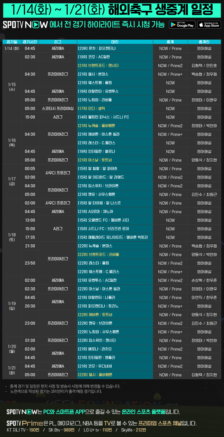 챔피언스리그, 세리에A 등 해외축구 주요 경기를 TV 채널 SPOTV Prime에서 생중계로 만나보세요!