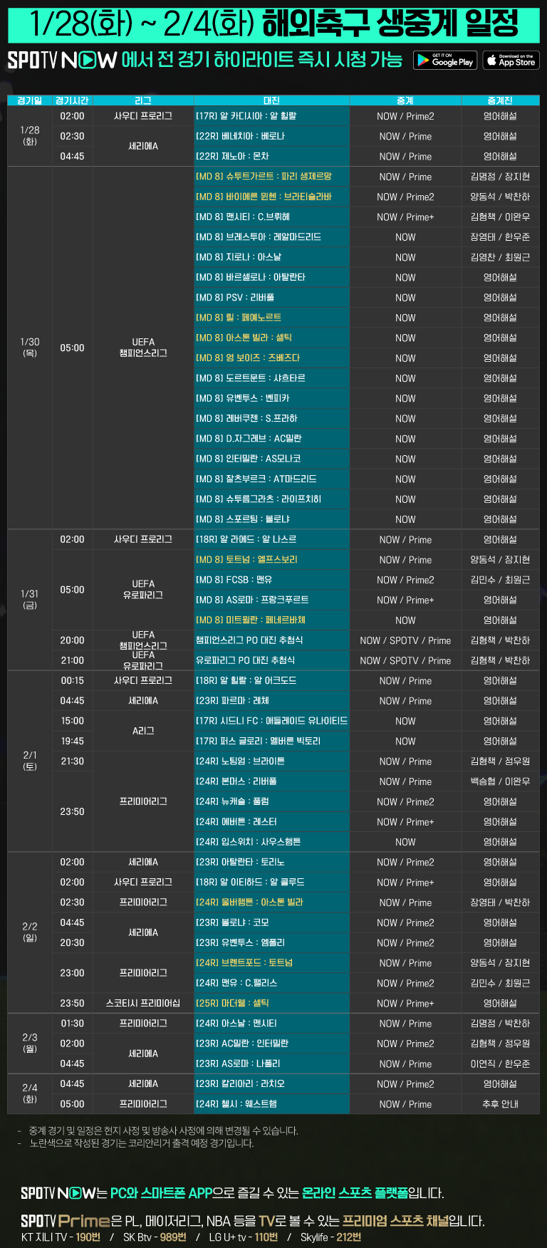 해외리그 주요 경기 생중계를 TV 채널 SPOTV Prime에서 만나보세요!