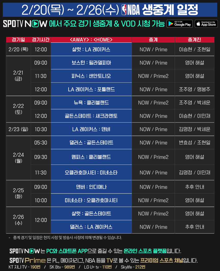 올스타전은 물론 24-25 NBA 주요 경기 생중계 역시 SPOTV Prime, SPOTV NOW에서 시청 가능합니다.