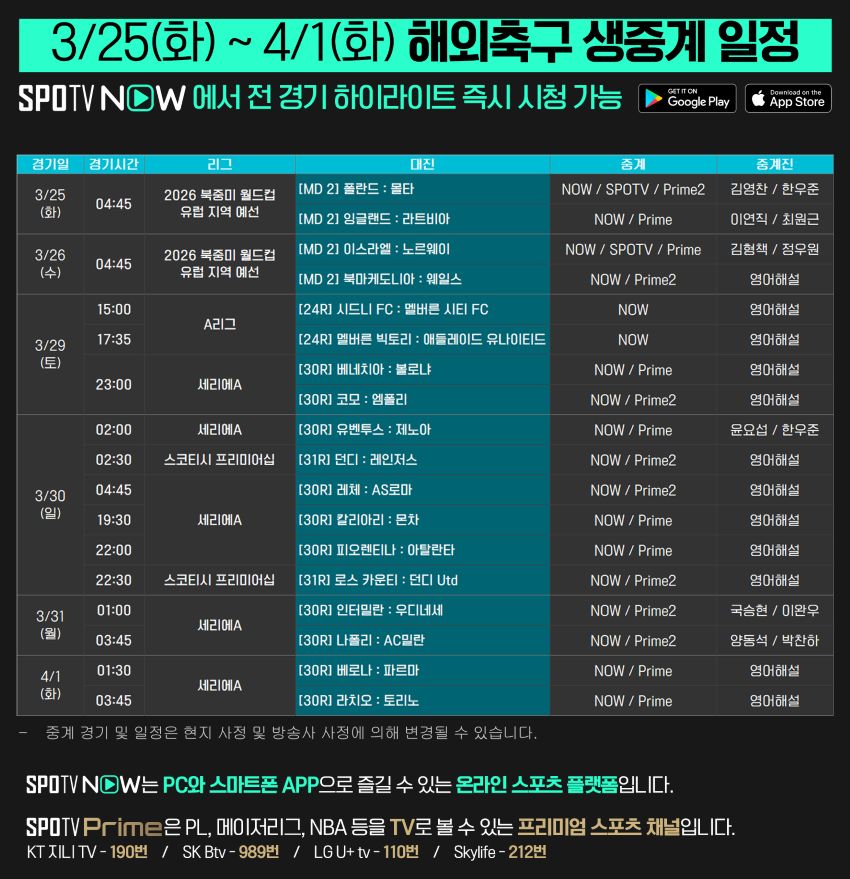 (KT 지니 TV 190번 / SK Btv 989번 / LG U+ tv 110번 / Skylife 212번)![2534FF[1].jpg](https://spotv.net/images/f20b0823-6891-4e6d-a3e4-780b75f942cb.jpg)