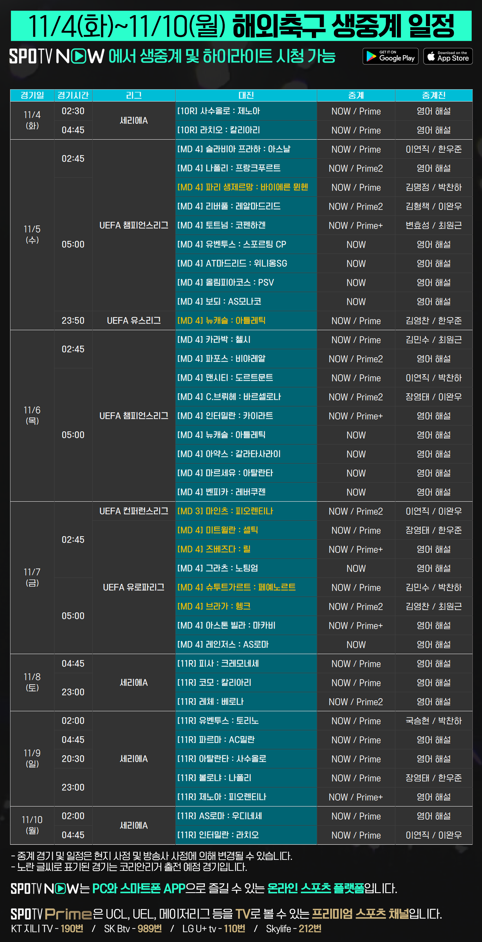 TV 채널 SPOTV Prime에서도 주요 경기를 만나보실 수 있습니다.